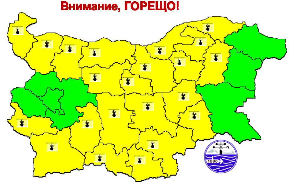 Предупреждението е в сила за всички общини от региона. Прогнозата е за максимални темпратури между 34 и 37 градуса.