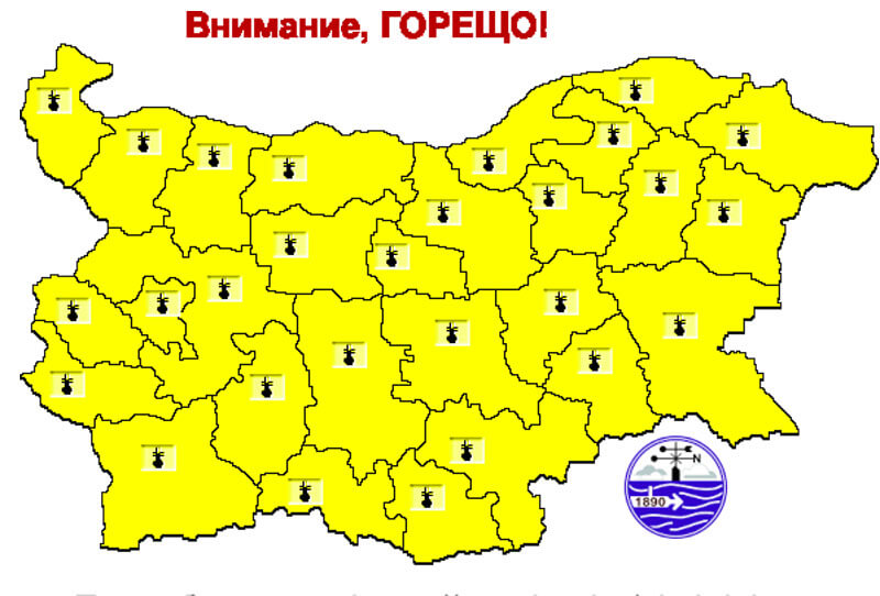 Жълт код за опасно високи температури е обявен за днес за цялата страна от Националния институт по метеорология и хидрология.