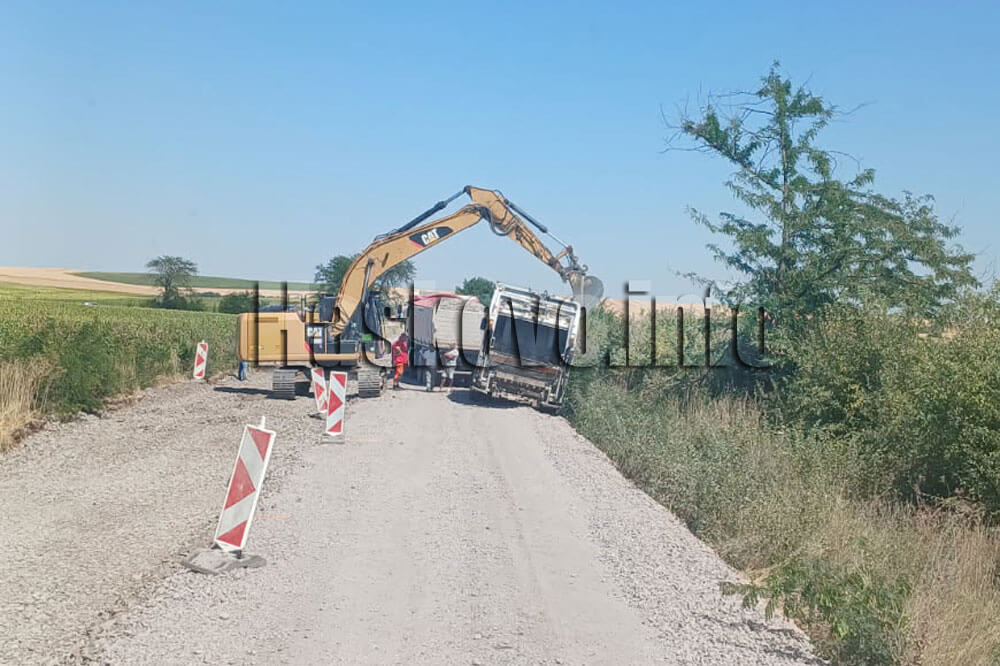 За пътен инцидент с боклукчийски камион на пътя Хасково – Минерални бани, който е в ремонт, сигнализираха читатели на Haskovo.info, които изпратиха снимка.