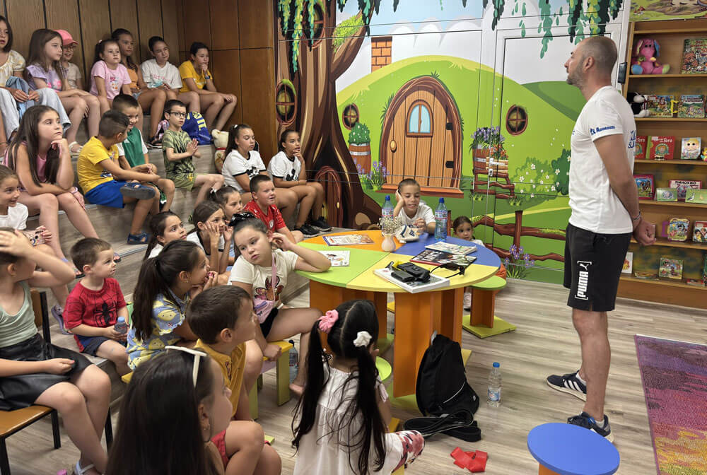 Треньорът по карате Кирил Петров се срещна днес с малчуганите в детския отдел на Регионална библиотека „Христо Смирненски“ в Хасково.