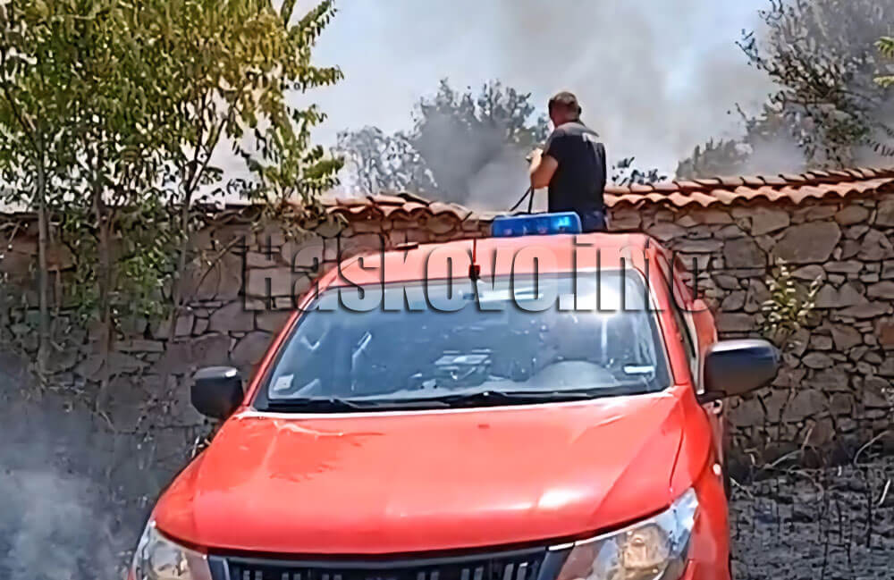 Запалили са се сухи треви в близост до стопански постройки. Огънят е влязъл в стопанския двор.