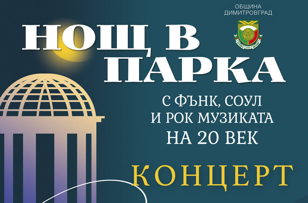 „Нощ в парка с фънк, соул и рок музиката на 20 век“ ще открие концертните вечери от програмата за празника на Димитровград.