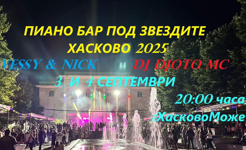 На 3 и 4 септември всеки е поканен на среща с Пиано бар под звездите, който е част от празничната програма за Деня на Хасково.
