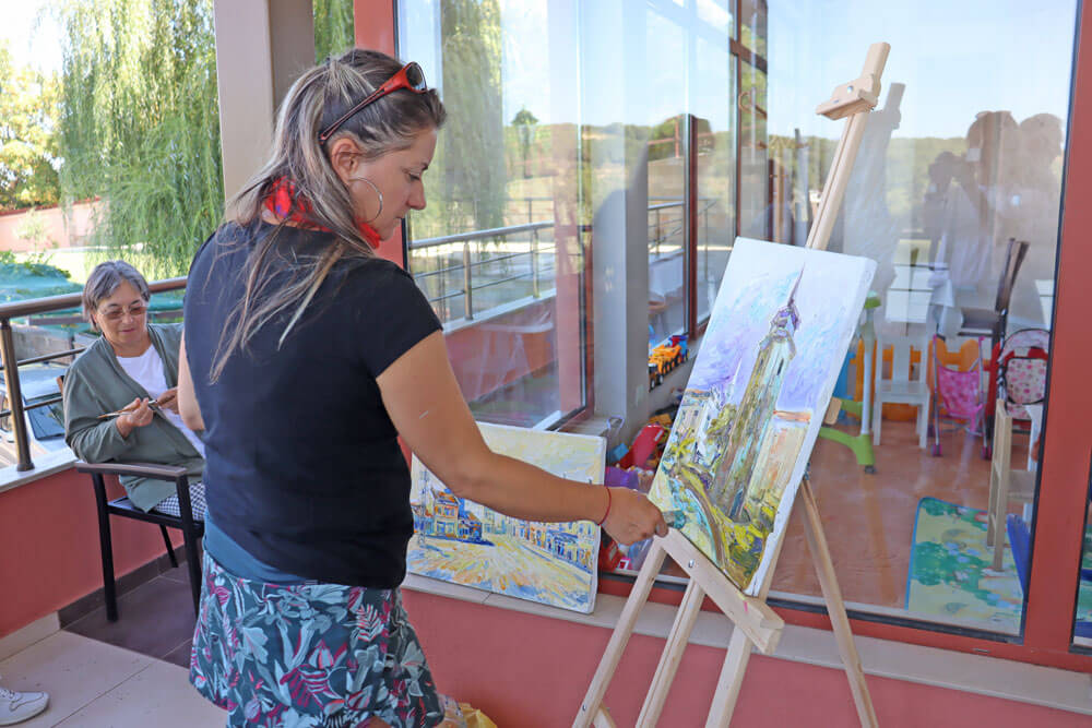 Ситуирани в комплекс на брега на язовир Клокотница, 8 художници от цялата страна рисуват Хасково в неговата пъстрота, история, кокетни улички и красиви символи.