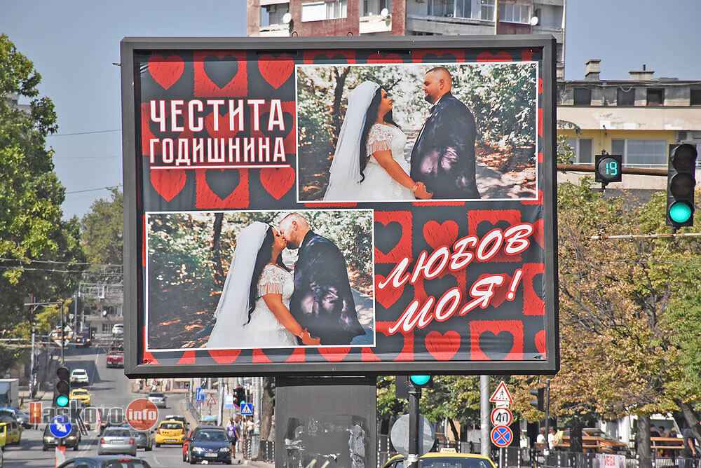 По повод 2 г. от сватбата им Жулиета Шаракчиева изненада своя съпруг Мариян Шаракчиев с билборд на кръстовището до автогарата в Хасково. „Честита годишнина, любов моя!“, гласи романтичното послание.