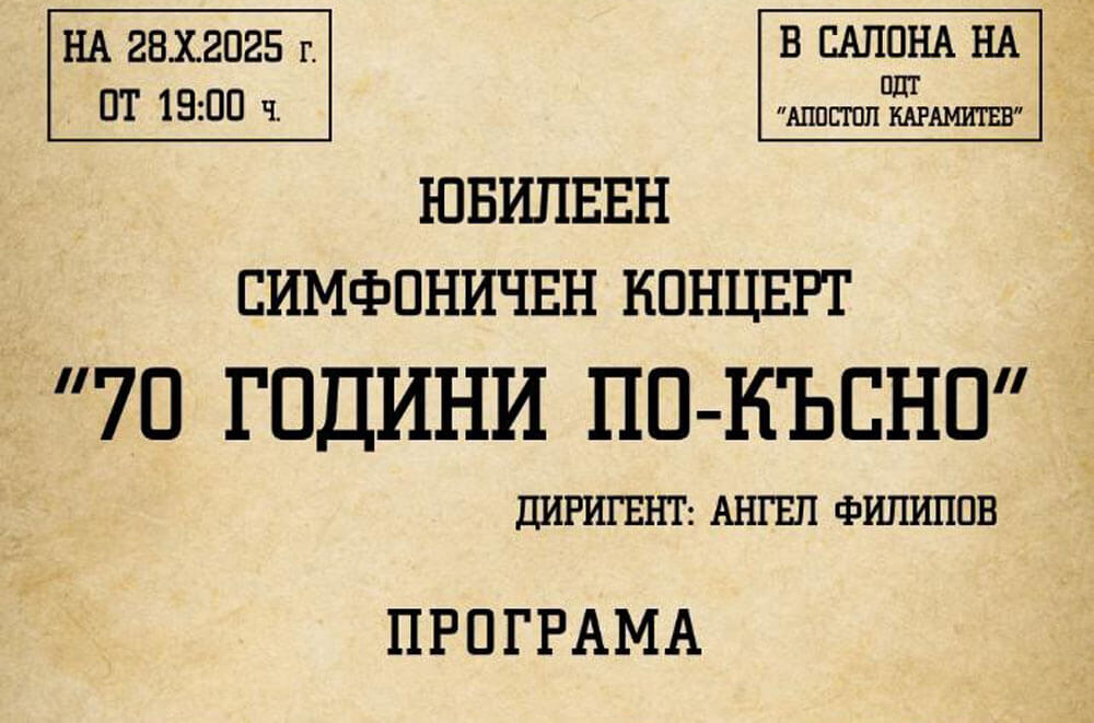 70 години по-късно тази програма ще оживее отново на сцената на Общински драматичен театър „Апостол Карамитев“ под диригентството на сина на Димитър Филипов – Ангел Филипов.