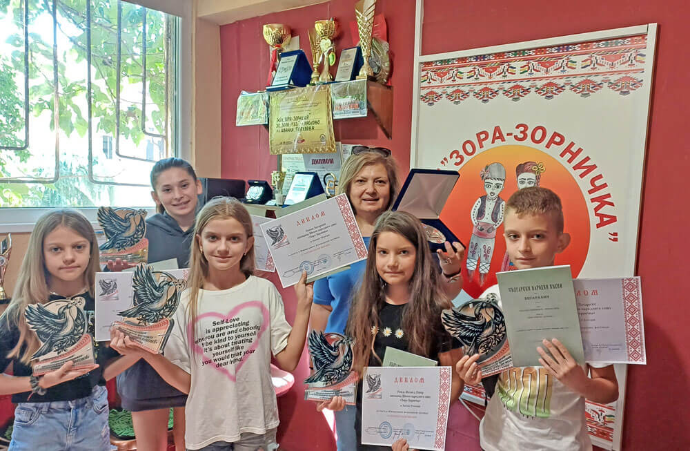 Даяна Асенова, Рожда Енвер, Симона Захариева, Йордан Захариев, Божидара Димитрова и Теодора Евтимова от школата по народно пеене „Зора-Зорничка“ в Хасково с преподавател Иванка Топузова участваха на Международния фолклорен фестивал „С песните на Елена Янкова“ в Болград, Украйна.