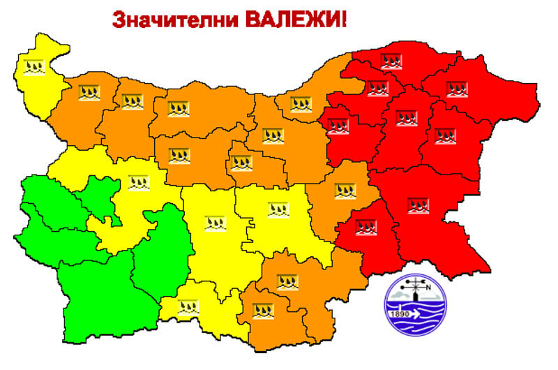 За днес също е в сила оранжев код. Времето ще остане дъждовно и в сряда.