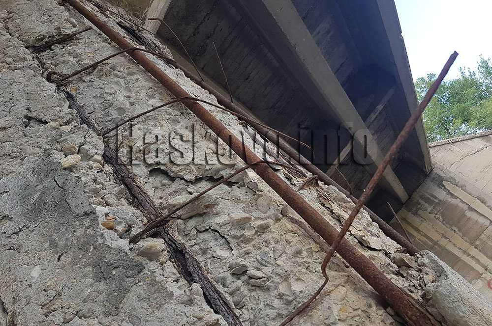 По настилката се забелязват пукнатини и дупки, в резултат от поддаването на стоманената пътна конструкция.