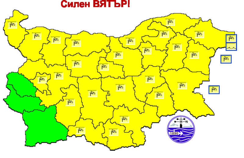 Ще духа силен вятър от югозапад с пориви до 90 км/ч, който след обяд ще се ориентира от северозапад и ще отслабне.