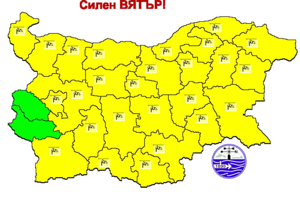 Ще духа силен вятър от запад-северозапад с пориви до 90 км/ч. Предупреждението е в сила за всички общини.