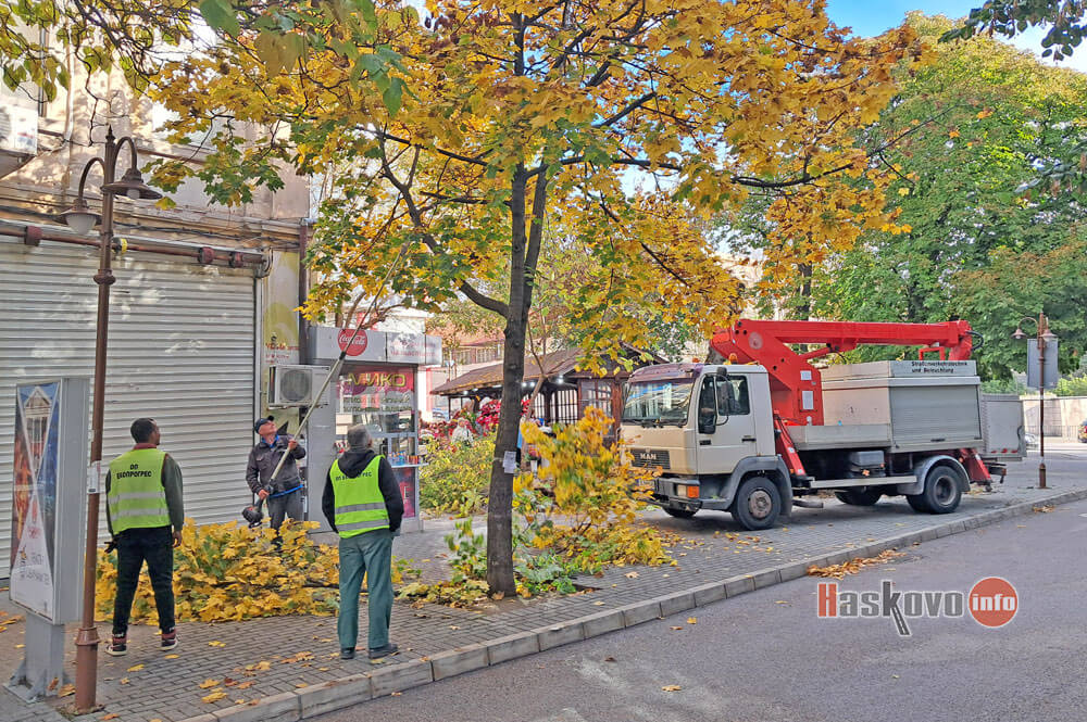 Работници на „Екопрогрес“ извършиха тази сутрин санитарна сеч до читалище „Заря“ в центъра на Хасково.