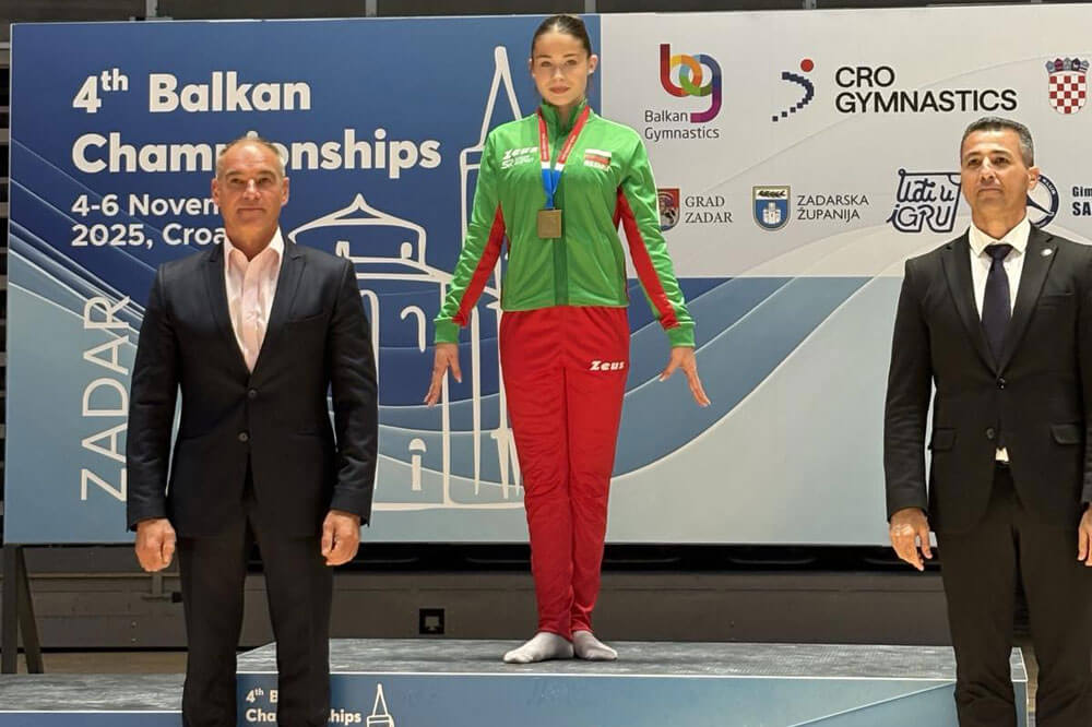 Състезателката на клуб „Юнак“ беше наградена от президента на Българската федерация по гимнастика, олимпийския вицешампион на висилка от Игрите в атланта Красимир Дунев.