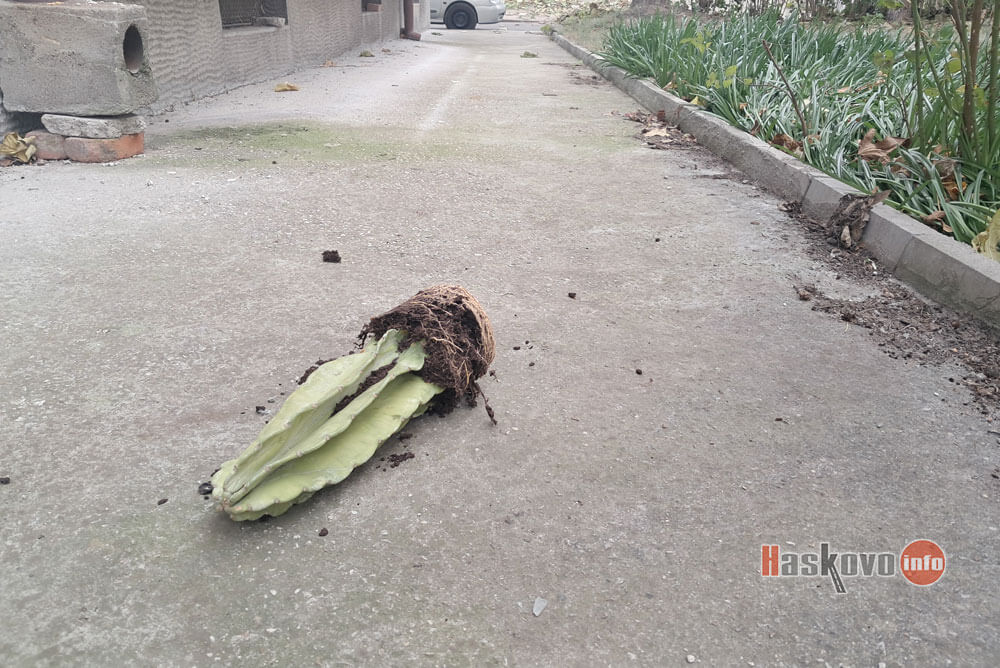 Падащи саксии от балконите застрашават минувачите в поредния ветровит ден в Хасково.