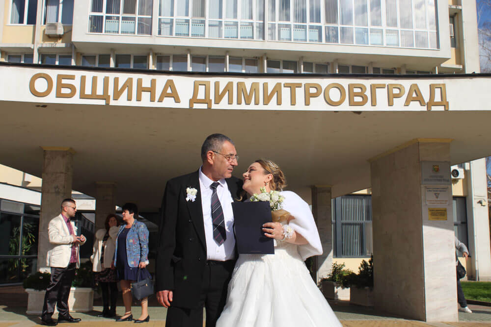 Младоженците бяха бракосъчетани от секретаря на Община Димитровград Венета Колева.