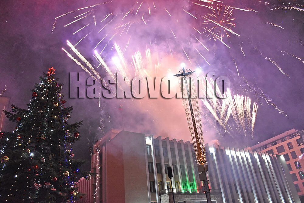 След това за радост на хасковлийчетата се появи и Дядо Коледа. Целият площад се включи в обратното броене до запалването на елхата, което беше последвано от пищна заря.