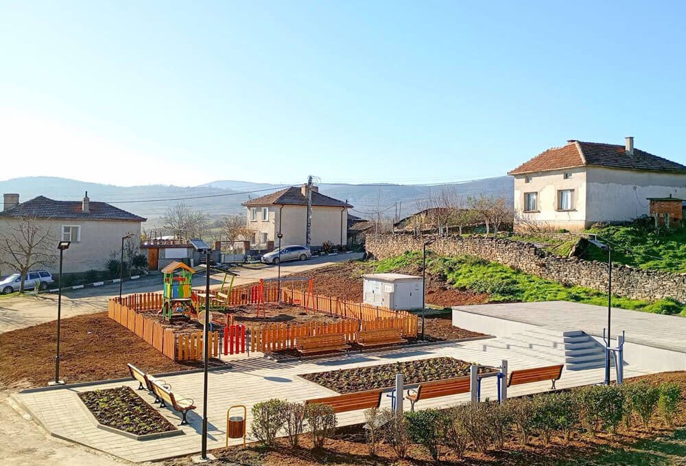 В рамките на обновяването са изградени и обновени: детска площадка, допълнена с нови и атрактивни съоръжения, уреди за фитнес на открито, създаващи възможности за активен начин на живот, обновена сцена за събори и публични изяви, изцяло обновен облик на обществената чешма – традиционен символ и място за срещи, нова паркова мебел – пейки, перголи и кошчета, градинки, засадени с цветя и декоративна растителност, сухоустойчива тревна покривка, соларно осветление, обхващащо целия площад.