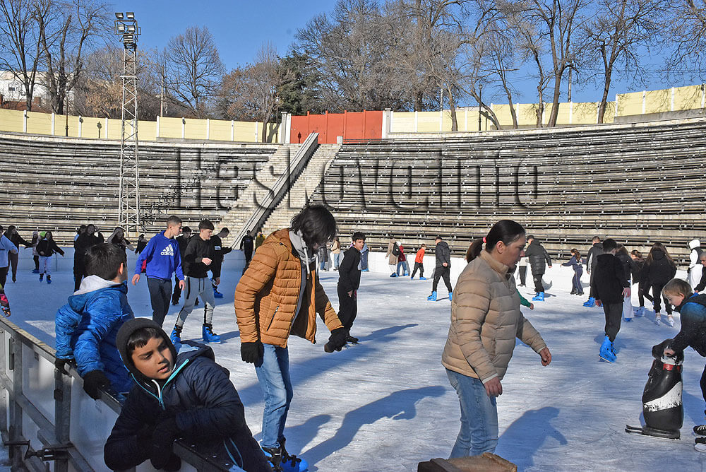 Ледената пързалка в Хасково се напълни с деца и младежи на втория ден след Коледа, когато се празнува Стефановден.