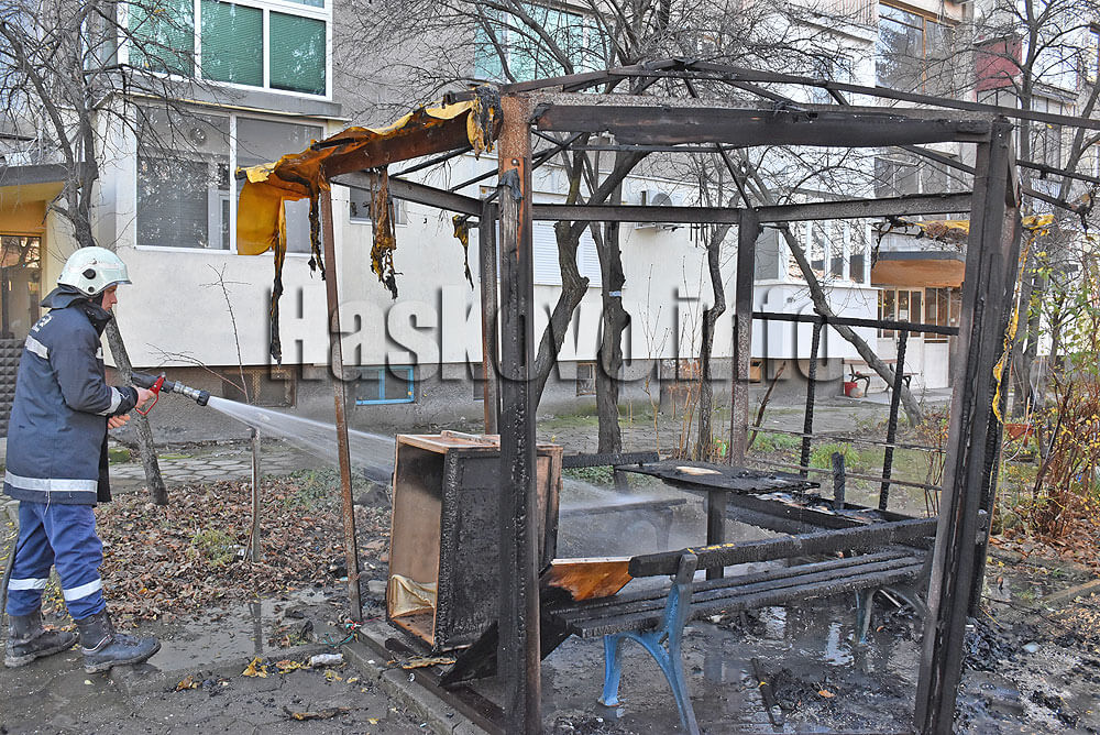 Изгоря беседка пред жилищен блок до новия парк в Хасково