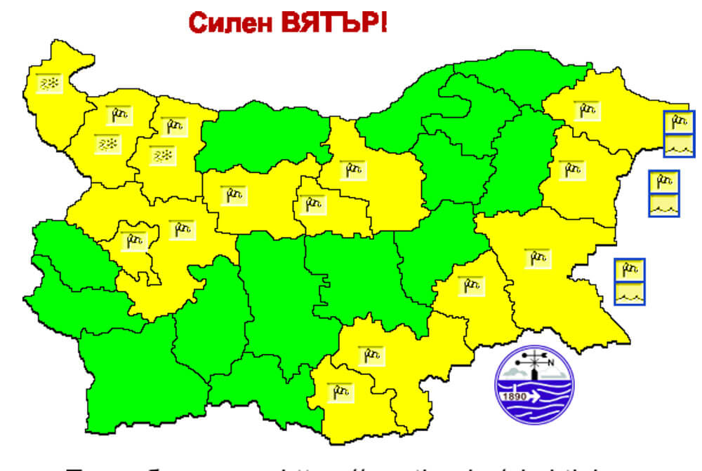 Поривите на вятъра ще достигат 90 км/ч. Предупреждението е в сила за всички общини с изключение на Димитровград и Минерални бани.