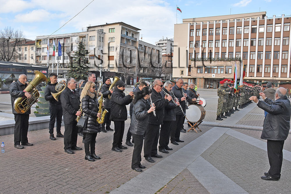 Представителните военни блокове преминаха в почетен марш пред официалните лица, сред които бяха кметът Станислав Дечев и областният управител д-р Стефка Здравкова.