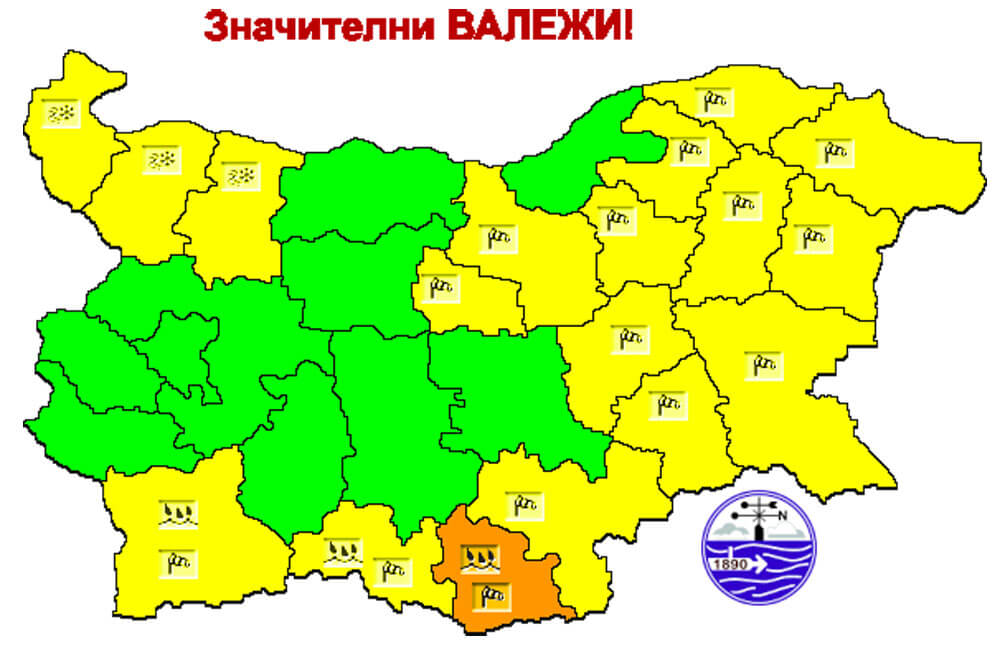Поривите ще са до 90 км/ч. Предупреждението е в сила за всички общини в региона.