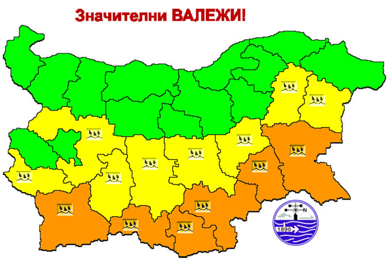 Оранжев код е обявен за общините Свиленград, Ивайловград, Харманли, Тополовград, Любимец, Стамболово и Маджарово, където количеството на валежите ще е между 35 и 65 литра на квадратен метър за 24 часа.