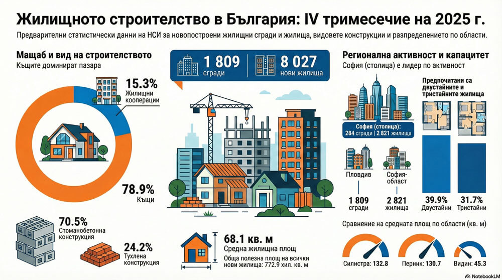 Както Haskovo.info писа, за последните три месеца на 2025 г. в региона започна строителството на 40 сгради с 201 жилища в тях.