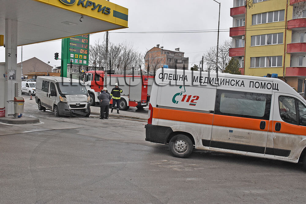 По първоначална информация на шофьора на микробус му е прилошало, блъснал е отзад фирмен автомобил, помел е пътни знаци и се е врязал в близката бензиностанция.