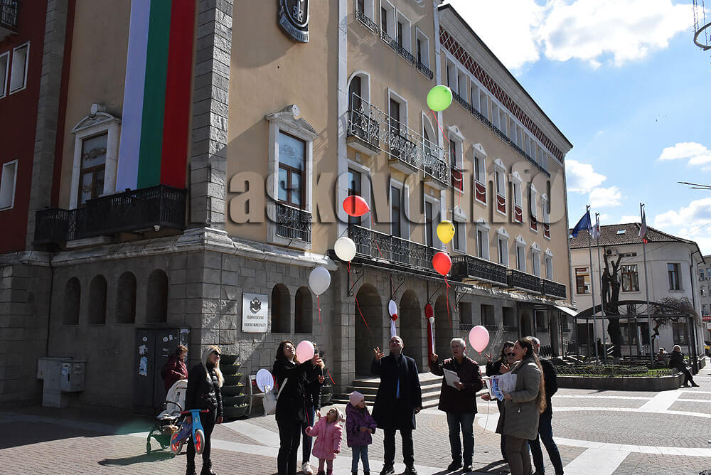 БалониПредседателят на фондация „Вивалекс“ Цветелин Замфиров и членове на Ротари клуб Хасково пуснаха в небето разноцветни балони и припомниха, че тази вечер Община Хасково ще освети в синьо Камбанарията в парк „Ямача“, до Монумент Света Богородица – цветът на кампанията, която подкрепя страдащите от редки заболявания.