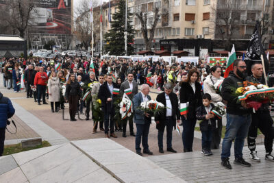 Последва празнично шествие до площад „Свобода“, където се проведе тържествен ритуал по поднасяне на венци и цветя в памет на загиналите за Освобождението на България ще бъде пред Паметника на незнайния воин. Солистът на Държавна опера Пловдив Евгений Арабаджиев изпълни химна на Република България. Водеща бе певицата Дария Боева.
