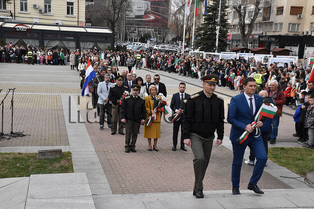 Последва празнично шествие до площад „Свобода“, където се проведе тържествен ритуал по поднасяне на венци и цветя в памет на загиналите за Освобождението на България ще бъде пред Паметника на незнайния воин. Солистът на Държавна опера Пловдив Евгений Арабаджиев изпълни химна на Република България. Водеща бе певицата Дария Боева.