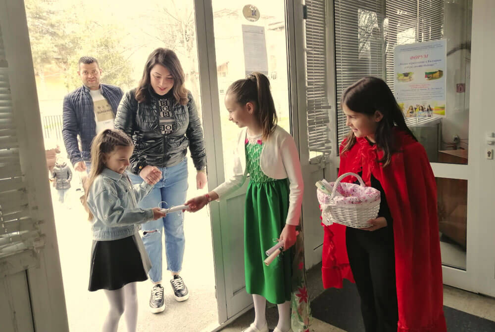 Още на входа малките гости бяха посрещнати от ученици от четвъртите класове, облечени като приказни и филмови герои. Всяко дете получи специално поздравително послание за добре дошло.