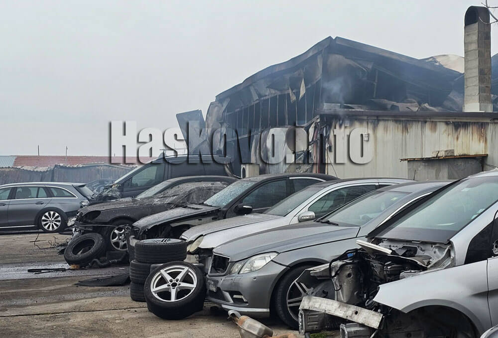 Няма пострадали хора. Изгорели са 50 автомобила, две халета, авточасти, навес и покривна конструкция от термопанели с обща квадратура около 450 кв. м.