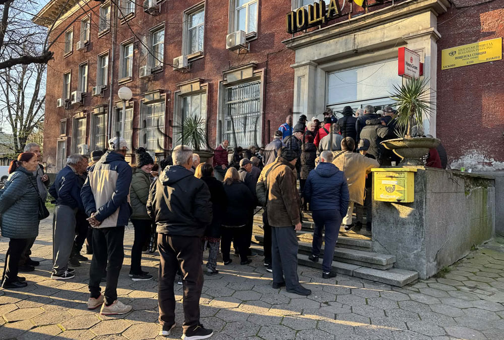 Опашки се образуваха пред централната поща в Хасково в първия ден на изплащане на пенсиите, което ще продължи до 20 април.