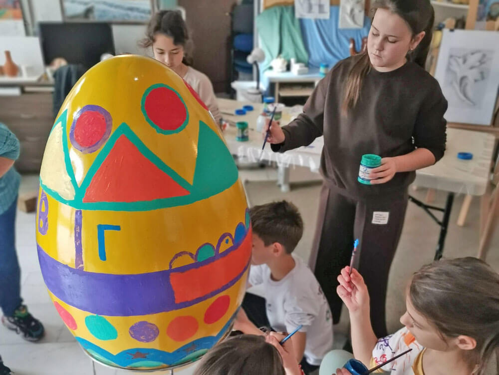 Междувременно усърдни малки художници изпробваха старата българска техника за изписване на великденски яйца с восъчна писалка. Други изрисуваха най-пъстрото градинско великденското яйце, което вече е поставено край Ротондата в центъра на града.