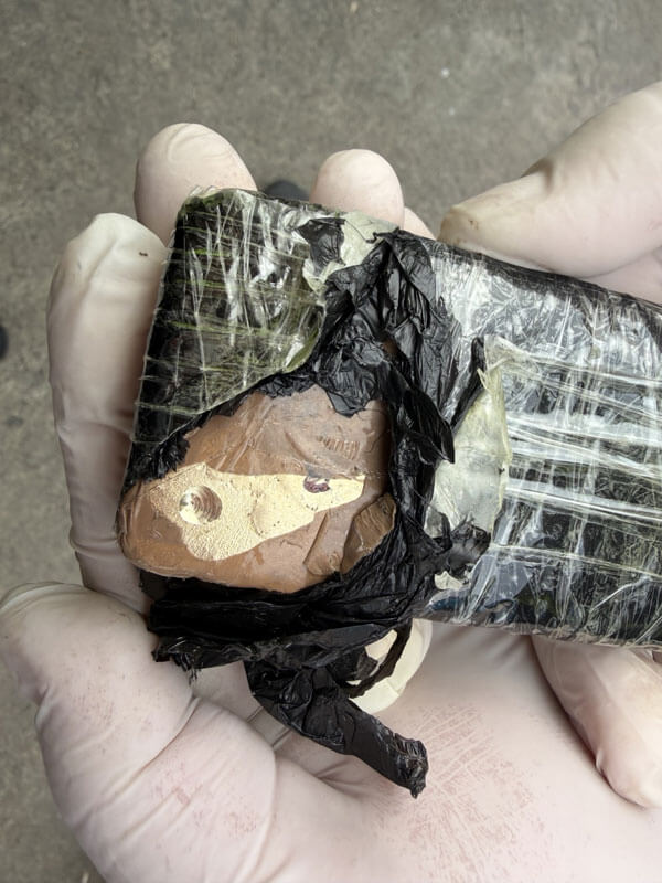След анализ на риска превозното средство е селектирано за щателна митническа проверка. Във фабрична кухина под капака на волана митничарите открили пакет, съдържащ отливка от жълт метал.