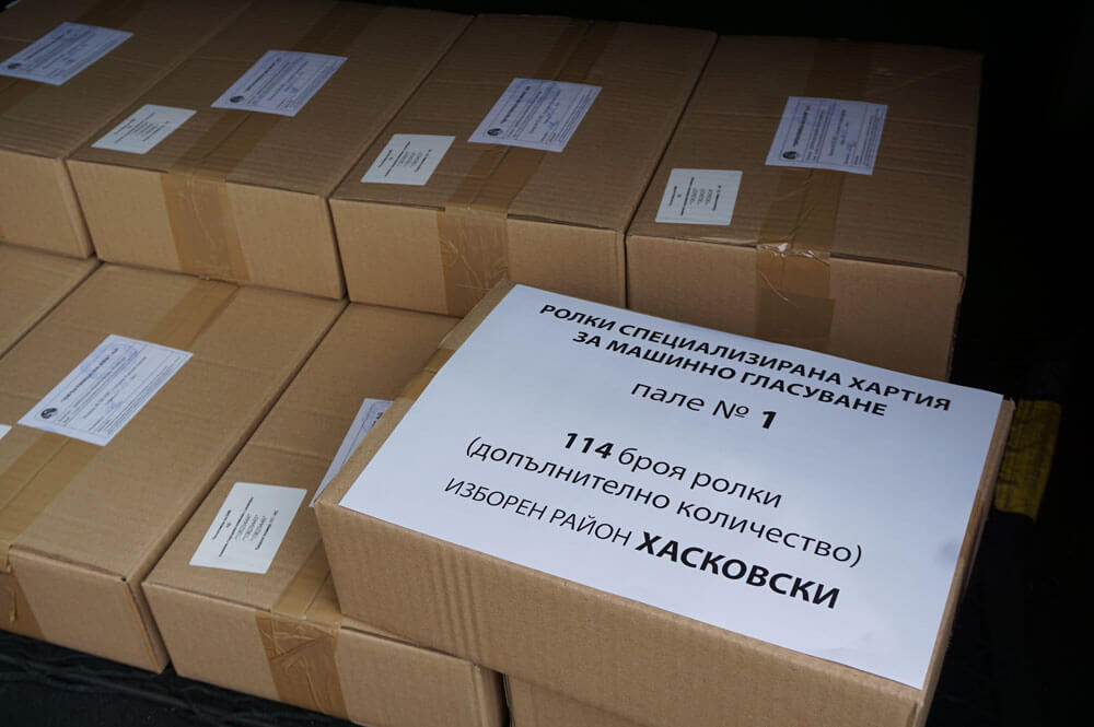 Последните 114 ролки със специализирана хартия за машинно гласуване пристигнаха днес в областната администрация в Хасково.