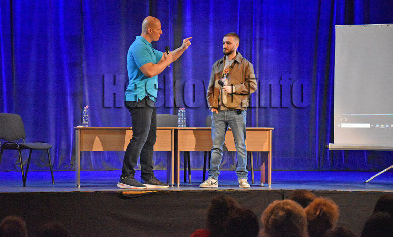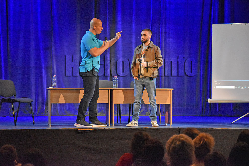 За човечността и опасностите в живота научиха учениците от ФСГ „Атанас Буров“ на емоционална среща с журналиста и ютубър Станислав Цанов и популярния изпълнител Криско в хасковския Младежки център.