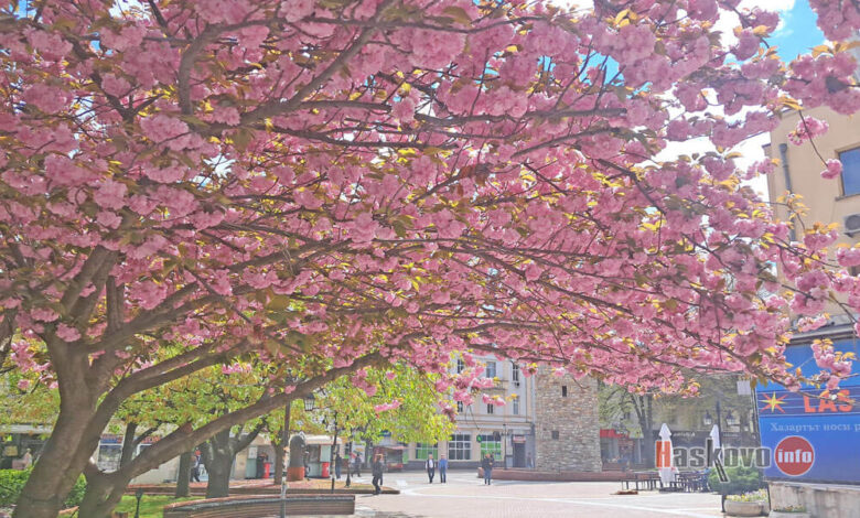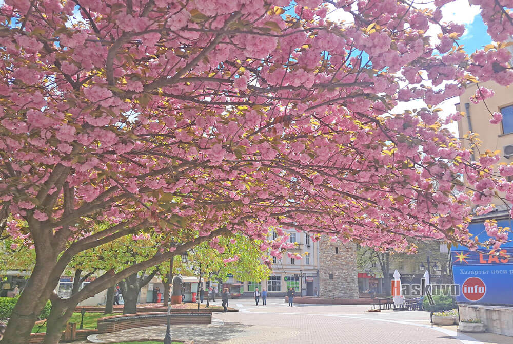 Хасково посреща пролетта с обилно цъфтящите японски вишни в центъра.