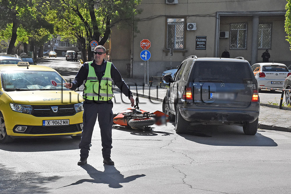 Инцидентът е при пресечката до съдебната палата, където са се сблъскали джип с турска регистрация и хасковски мотоциклет.