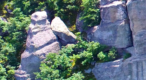 Бяхме тръгнали с двама колеги към „Орлови скали“ за да направим снимки на изсечените човешки профили с дрон, но се объркаме в гората, разказа Паулина Михова. На едно място, към което нямаше никакъв друг достъп видяхме да стърчи острия връх на скала. Изненадата ни беше пълна, когато дронът на Иван Мануилов ни разкри величествената гледка. Ставаше въпрос не за една скала, а за цял комплекс изсечен в скалите. Най-добра видимост към него има единствено от въздуха. Градът има ясно изразен портал със стълбище, което води към него. Налице са и изсечени в скалата ниши, което е неизменния белег за светилище. От двете страни на портала има високи кули, сечени в скалата, които наподобяват увила се змия и завършват със змийски глави. Целият комплекс е дълъг около 900 метра, като порталът е разположен близо до центъра, по дължината на скалата.