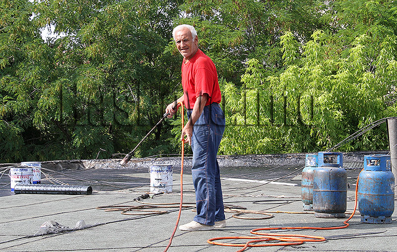 Майстори поставят хидроизолация на покрива на хасковския Младежки център.