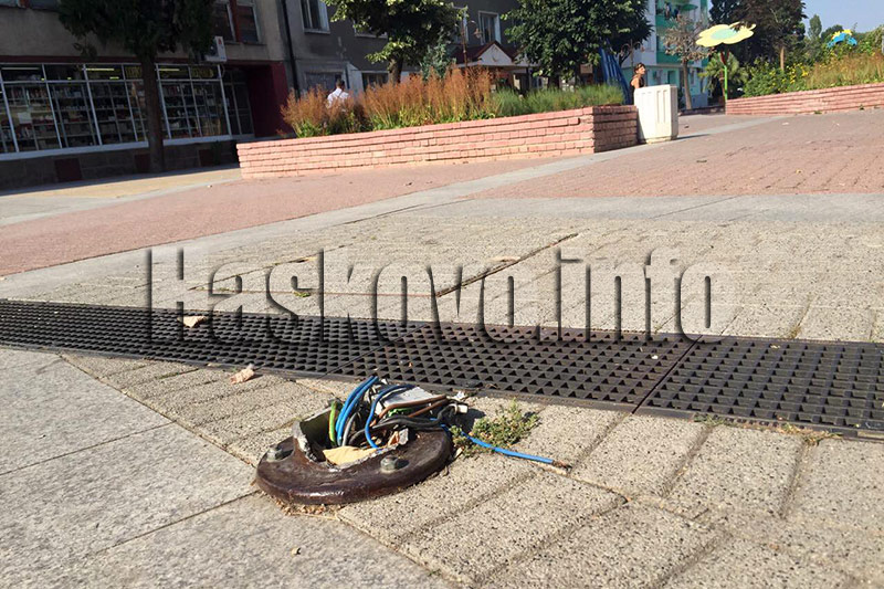 Вероятно става въпрос за счупена от вандали лампа, чиито кабели сега са на плочките и могат да предизвикат сериозен инцидент, ако някой ги настъпи. Мястото е изключително комуникативно, защото от там преминава огромен поток от пешеходци, коментират читателите.