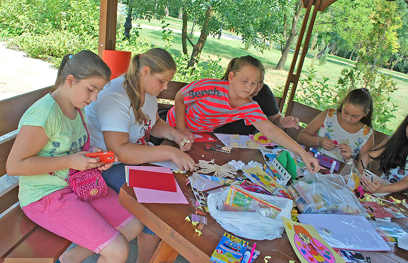 Десетки деца от Минерални бани се събраха днес в парка пред църквата „Свети Георги“ в Националния курорт за импровизираната „Работилница за Ивка“.