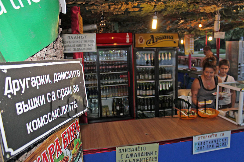 Първите кръчми на открито също чакат клиенти, като най-атрактивната се намира в началото на лявата алея, където около тезгяха са монтирани любопитни соцтабели. Най-атрактивната според собственика е закачане на видно място на ствола на дърво и гласи „Другарки, дамските въшки са срам за комсомолките“.