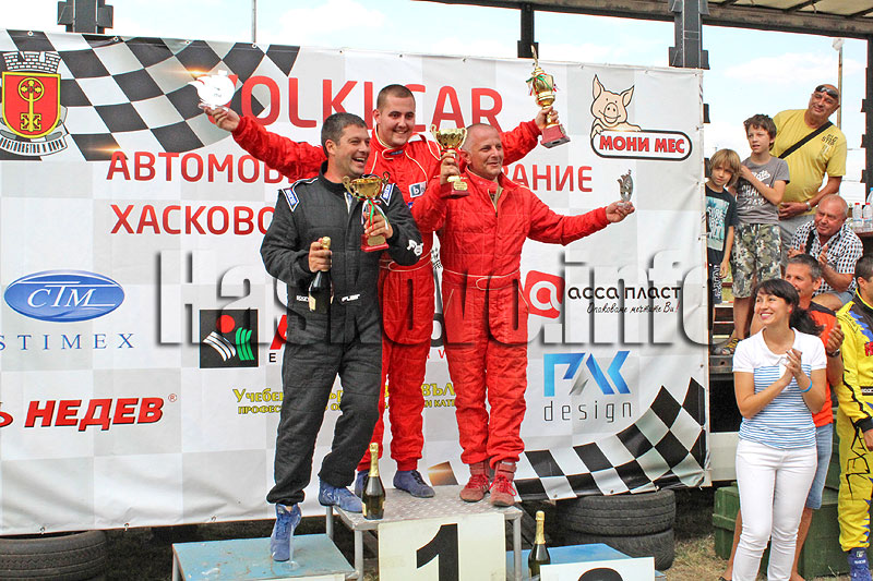 Председателят на „Автомотоклуб Хасково“ Иван Бакърджиев вдигна купата за второто място от първото автомобилно състезание Volki car, което се проведе на детелината на кв. „Орфей“ в областния град. След двата отделни старта хасковлията събра 14 т.