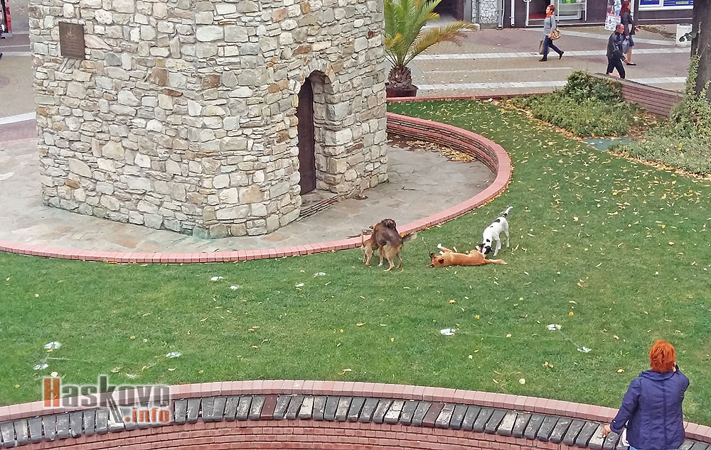 Пореден сигнал за улични кучета в центъра на Хасково изпратиха със снимки читатели на Haskovo.info. Хората твърдят, че животните се събират около часовниковата кула, защото ги хранят клиентите на дюнерджийницата, а понякога се втурват озлобени между хората за да защитават територията си.