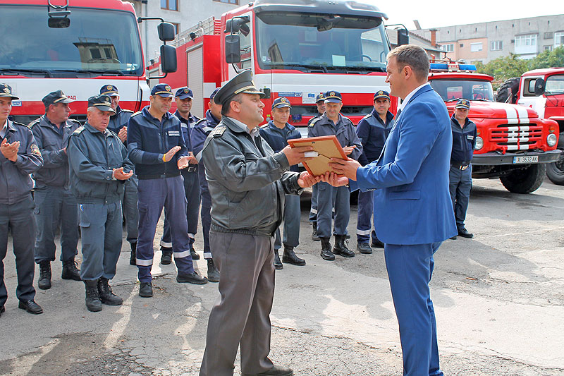 Областният управител Станислав Дечев връчи грамоти на пожарникарите за изключителен професионализъм и безрезервна работа при овладяване и потушаване на пожарите в Хасковска област през лятото.