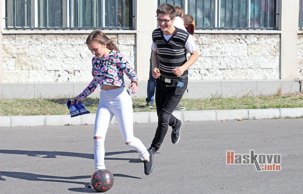 Девойка показа завидни футболни умения на паркинга зад монумента на Богородица в Хасково.